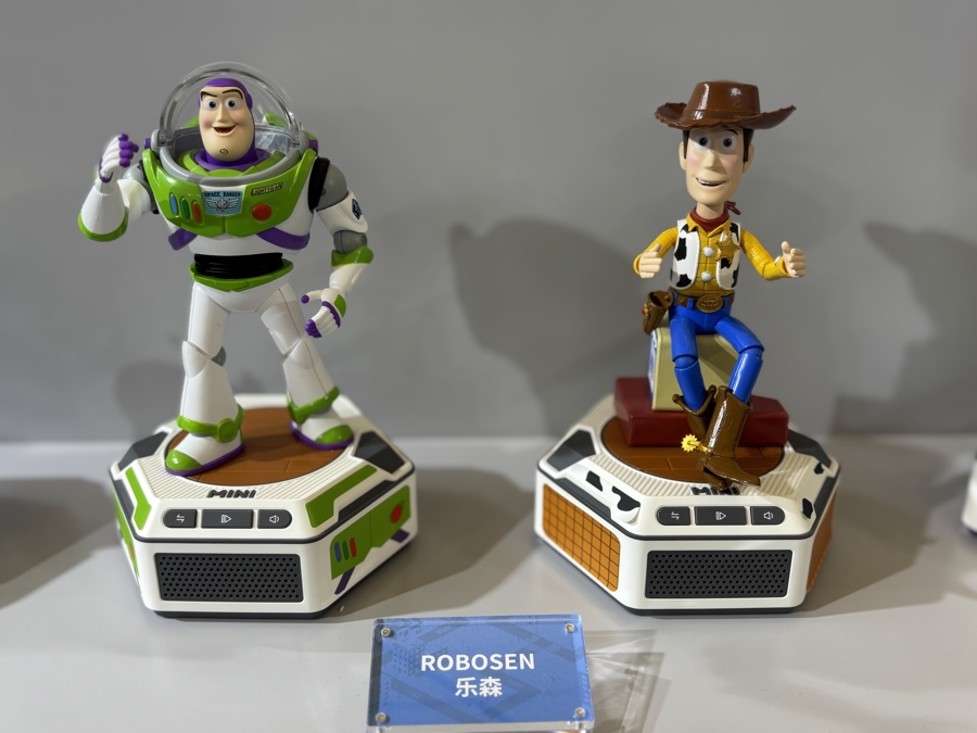 作为迪士尼的授权合作伙伴,乐森历时2年研发的迷你机器人系列潮玩,在展会现场获得不少关注。以巴斯光年、草莓熊、翠丝、瓦力等动漫角色为原型推出的机器人潮玩,由“可替换公仔”和“通用底座”两部分组成,通过“即插即唤醒”的芯片识别技术,公仔能够瞬间“活”过来。